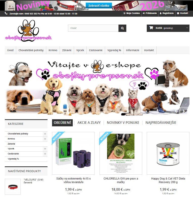 Obchod PRINTONER Senec ponúka chovateľské potreby značiek ako je HUNTER, DOG TRACE, NOBBY, TRIXIE… a krmivo HAPPY DOG / HAPPY CAT a IBERO