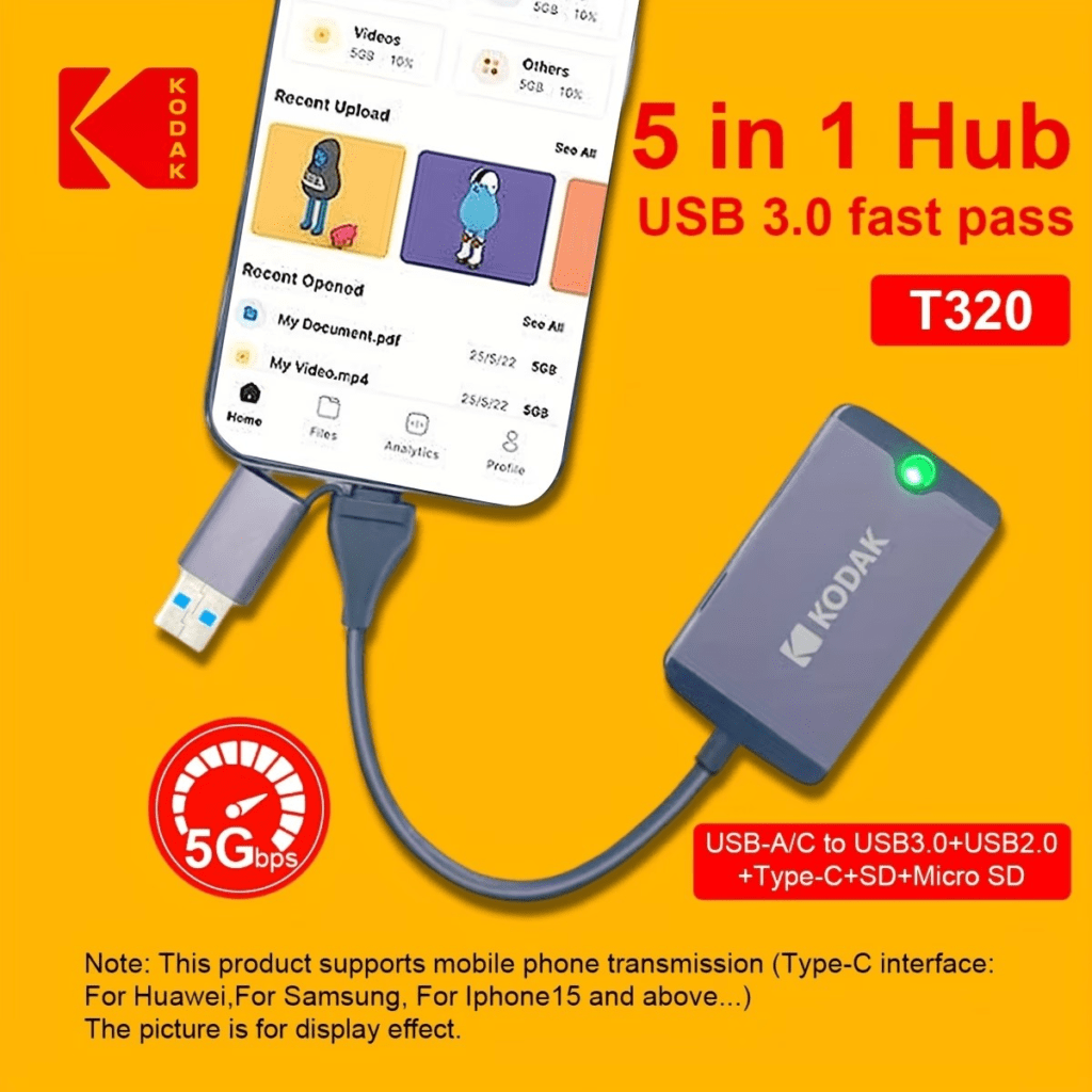USB-A/C Hub (5-v-1) je univerzálny 5-v-1 rozbočovač s jedným USB 3.0, USB 2.0, Type-C, SD a TF slotom, vstupné rozhranie je USB-A/Type-C dva v jednom, prispôsobiteľný rôznym zariadeniam, vybavený vysokokvalitným dátovým káblom, možnosť pripojenia k notebookom, smartfónom a ďalším zariadeniam.